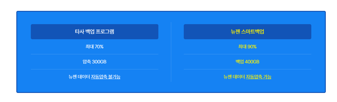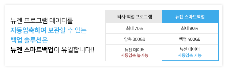뉴젠솔루션의 백업서비스 저장용량은 압축 후의 파일크기로 계산하므로,